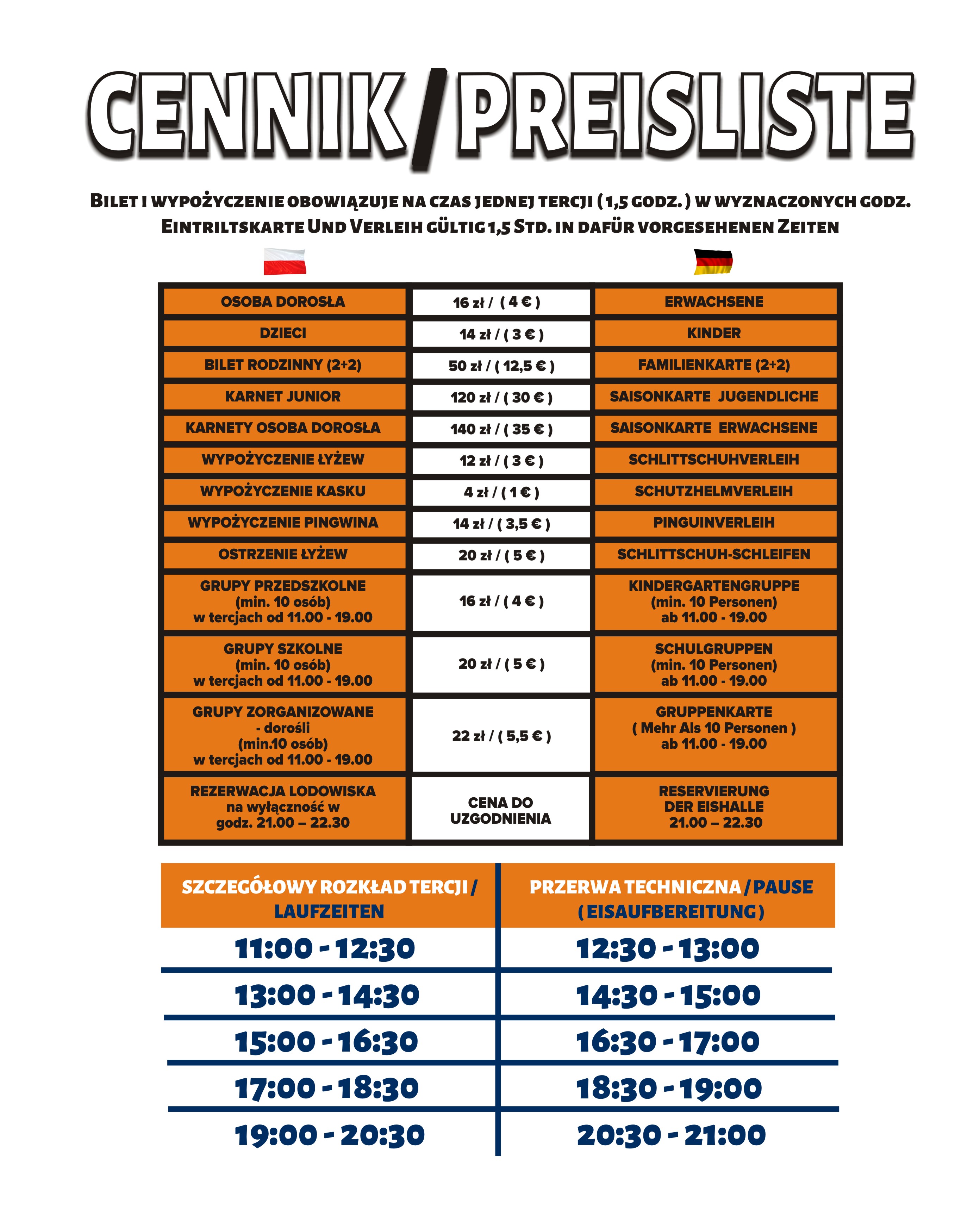 Lodowisko otwarte będzie każdego dnia , tercje rozpoczynają się od godziny 11.00 .