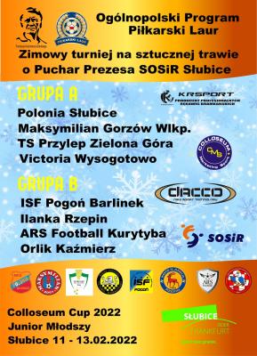 Pierwszym turniejem będzie w dniach 11-13 lutego Colloseum Cup Juniorów Młodszych Słubice 2022 o Puchar Prezesa Słubickiego Ośrodka Sportu i Rekreacji.