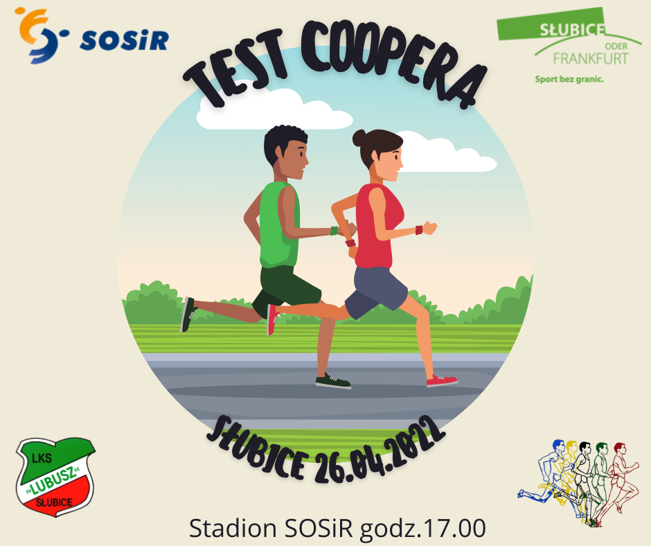 Przeprowadzany od kilku lat test pomaga słubiczanom określić poziom kondycji. Organizatorzy: Słubicki Ośrodek Sportu i Rekreacji, Lubuski Klub Sportowy „Lubusz” Słubice oraz Słubicka Akademia Biegowa zapraszają we wtorek 26 kwietnia na godzinę 17:00, na stadion przy ulicy Sportowej.