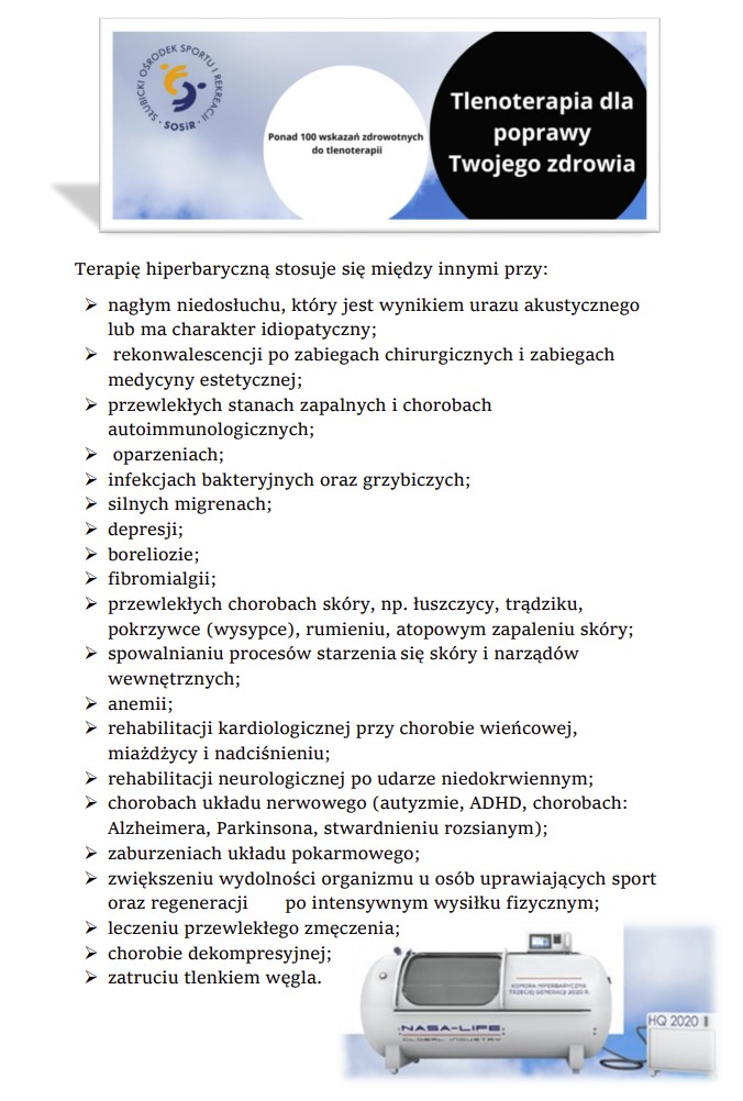Już od marca zapraszamy do korzystania z komory hiperbarycznej.