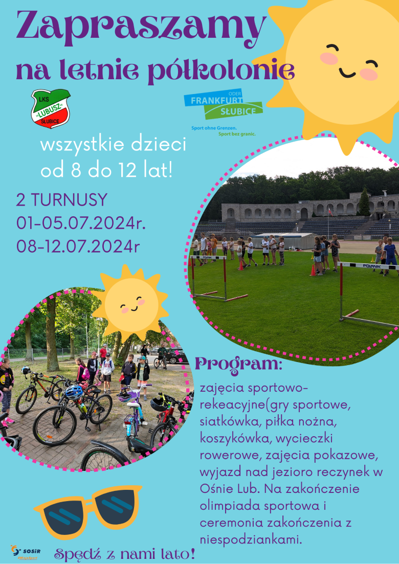 Lubuski Klub Sportowy „LUBUSZ” Słubice celem zapewnienia bezpiecznego, aktywnego wypoczynku dzieciom, kształtującego umiejętności społeczne zaprasza dzieci z terenu Gminy Słubice na zajęcia edukacyjne w ramach wypoczynku letniego – „Półkolonie 2024”
