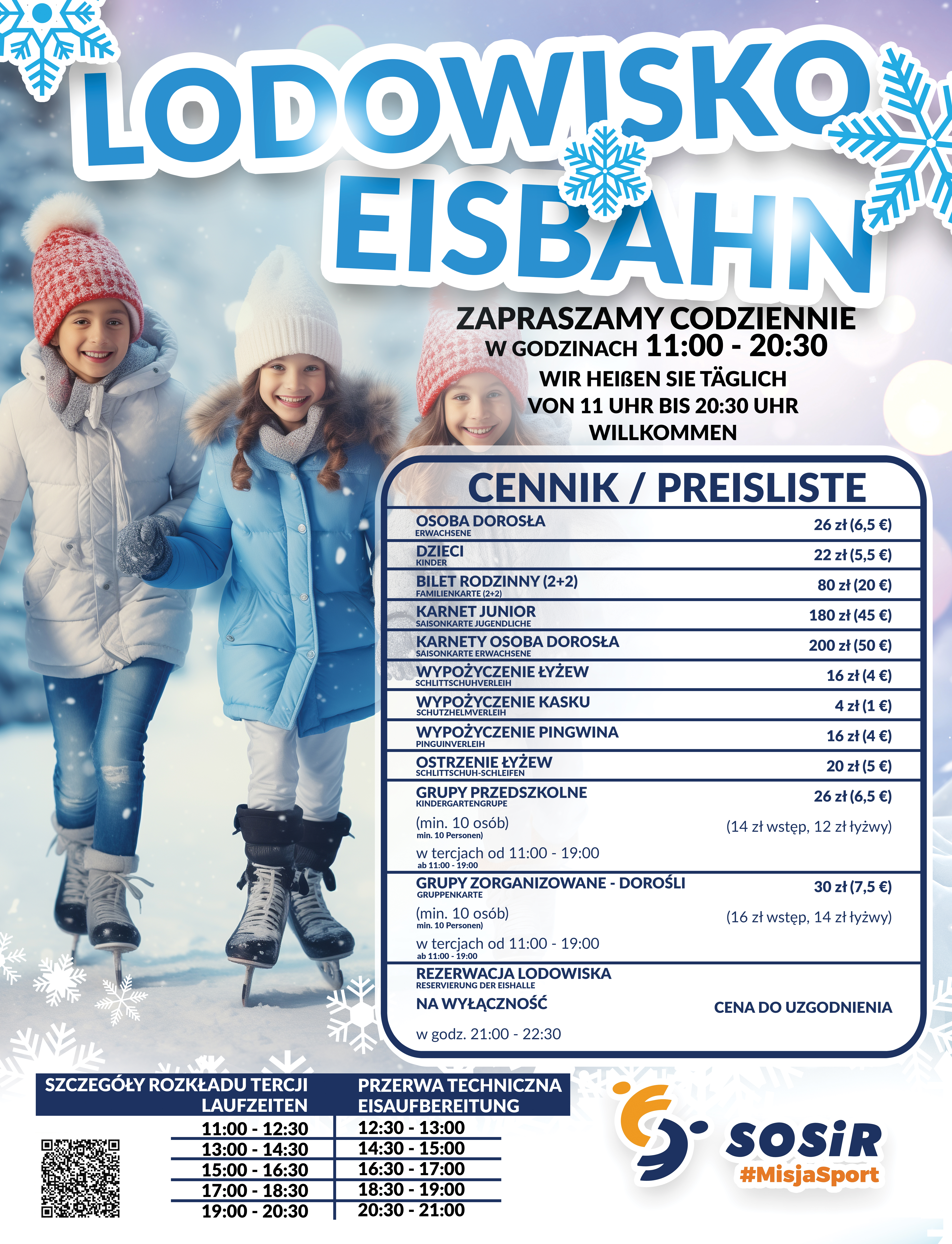 Miło nam poinformować Państwa , że otwarcie naszego lodowiska nastąpi w niedzielę 1 grudnia 2024r.