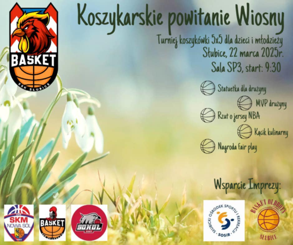 Stowarzyszenie SSK Basket Słubice zaprasza na koszykarskie przywitanie wiosny. W sobotę 22 marca br. w SP3 w Słubicach na zaproszenie stowarzyszenia zagrają drużyny z Sulechowa, Nowej Soli i Żar.