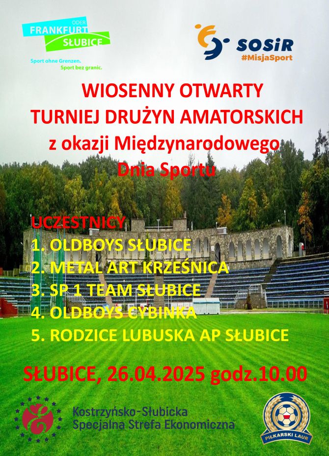 W sobotę 26 kwietnia na boisku bocznym, ze sztuczna trawa rozegrany zostanie turniej amatorów w piłce nożnej.