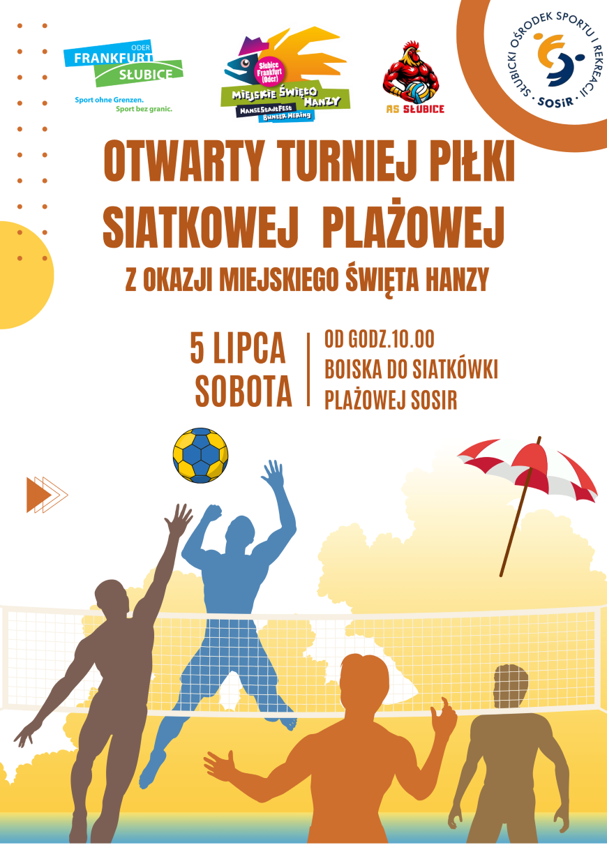 Zapraszamy chętne drużyny do zapisów na Plażowy turniej piłki siatkowej na boiskach do ,, plażówki '' przy stadionie SOSiR w Słubicach.
